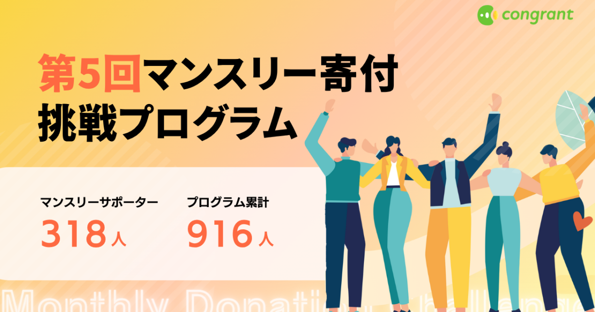 マンスリー寄付挑戦プログラムは、コングラントの利用団体向けのプログラムです。