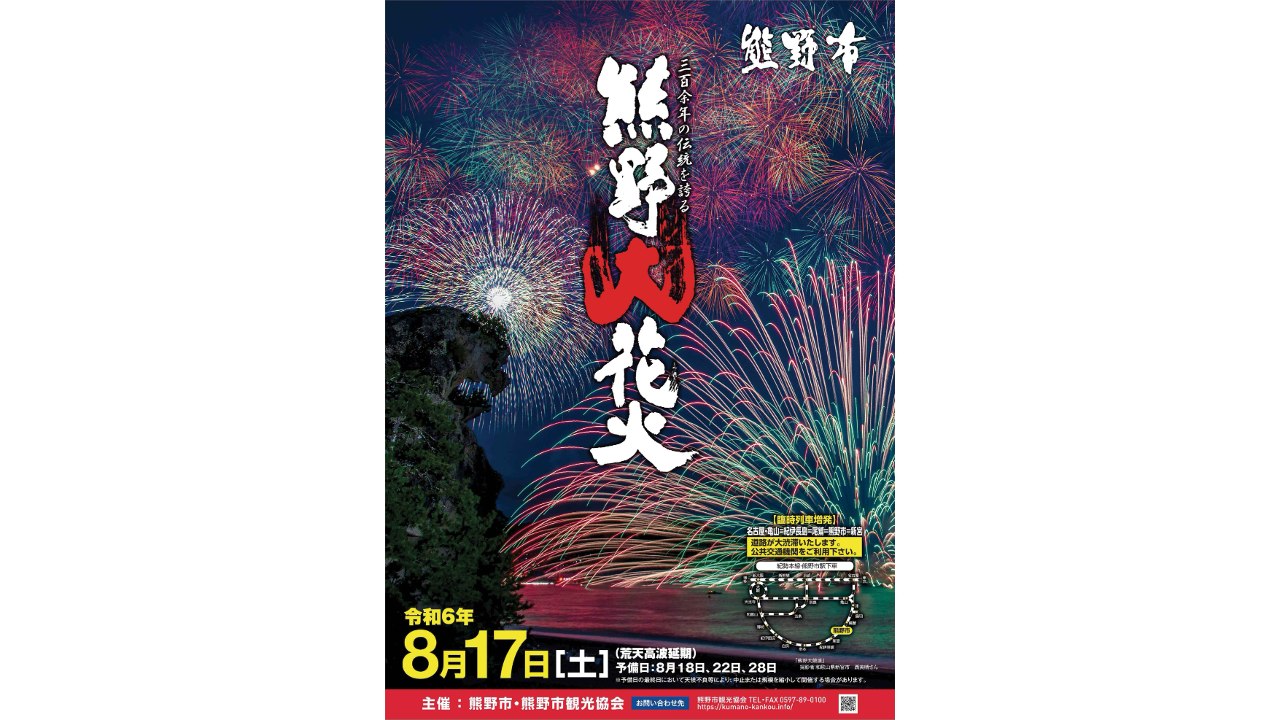 市内の事業者様をはじめ、熊野大花火大会にご支援いただいている皆さまに掲示のご協力をいただき、機運醸成を図ってまいりたいと考えております。