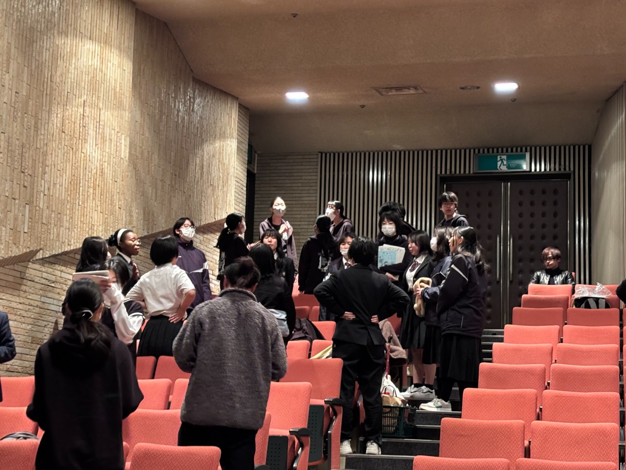 ↑この写真は、本番朝の会場の様子。上演する若き演者たちが、発声練習に専念。「あー」「おー」演劇特有の発生練習のセリフが、会場にこだましていました。