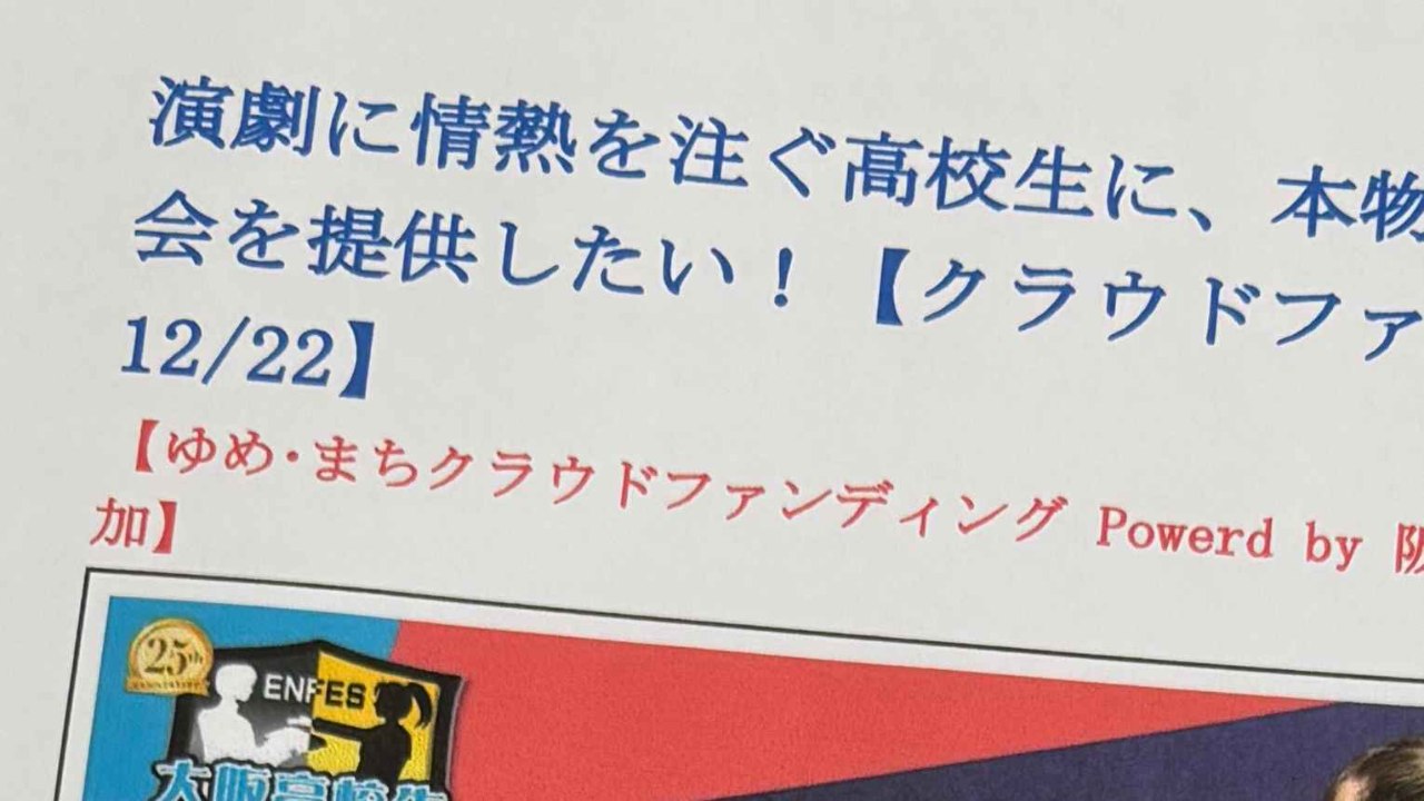 大阪高校生演劇フェスティバルも、その一環で実施するものです。