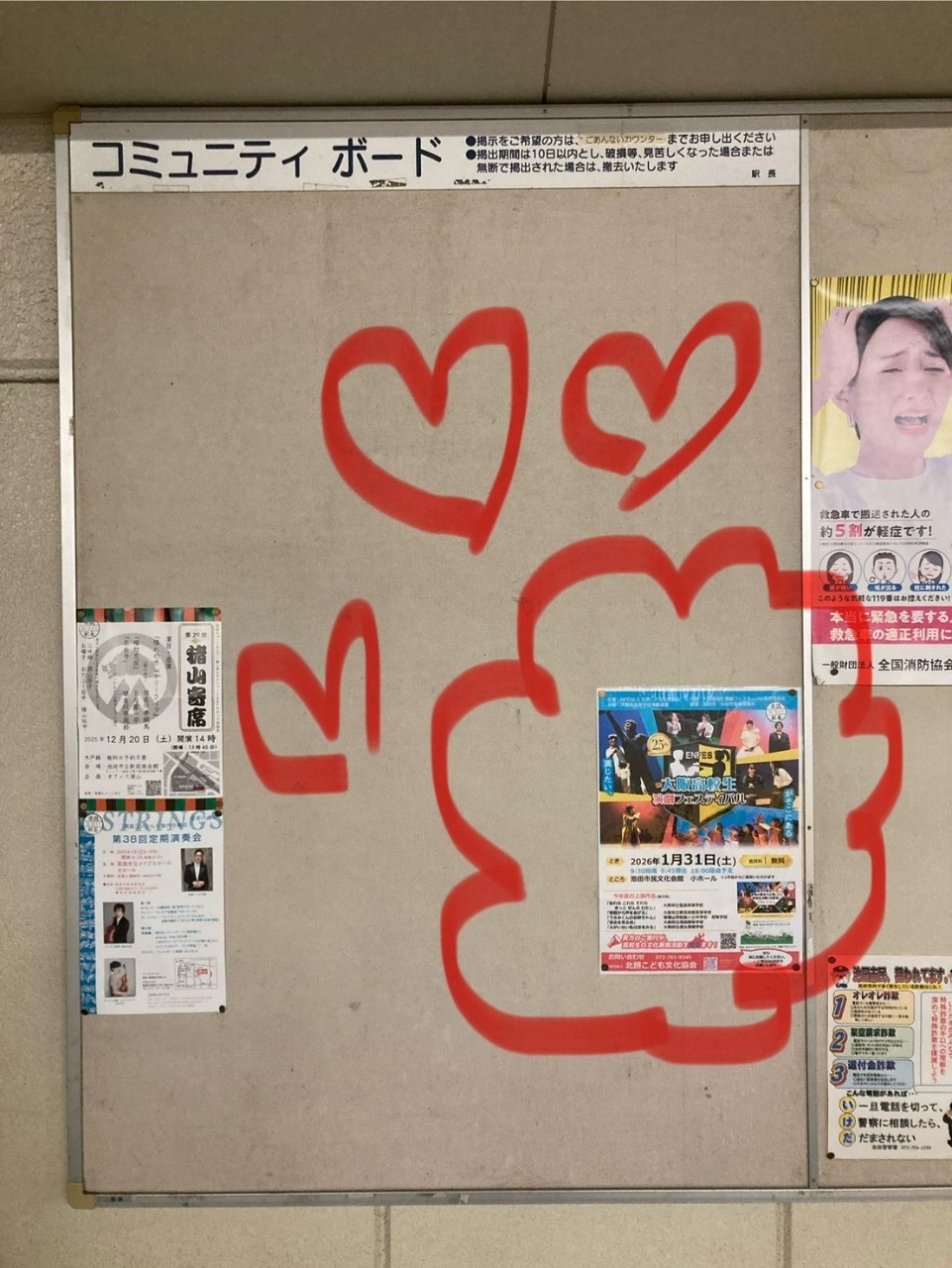 阪急電車のプラットホームのコミュニティ掲示板に、ポスターを掲示していただいました!