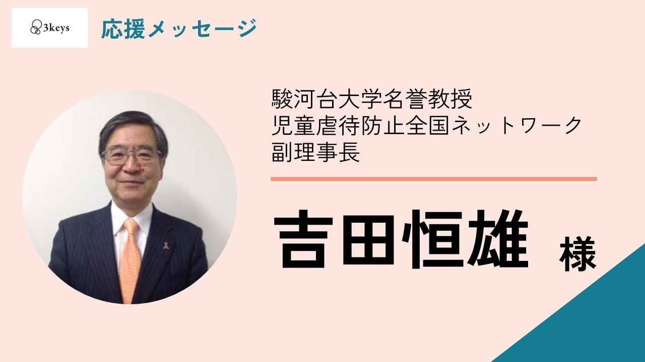 駿河台大学名誉教授、児童虐待防止全国ネットワーク副理事長の吉田恒雄様より応援メッセージをいただきました。