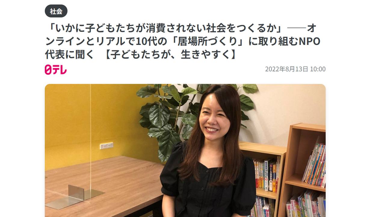 「いかに子どもたちが消費されない社会をつくるか」――オンラインとリアルで10代の「居場所づくり」に取り組むNPO代表に聞く