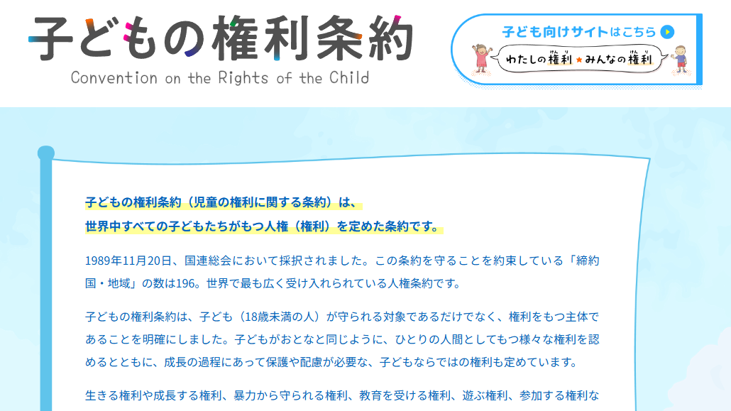 など、子どもがひとりの人間としてもつ様々な権利を認めています。