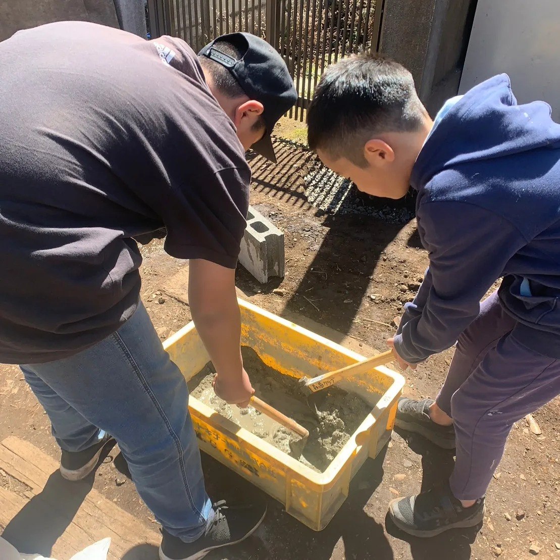 コンクリートはセメント・砂・砂利と水を混ぜてできる混ぜるのには力がいるし、丁寧に形を整えないといけないやってみないと分からないことってたくさんありますね。
