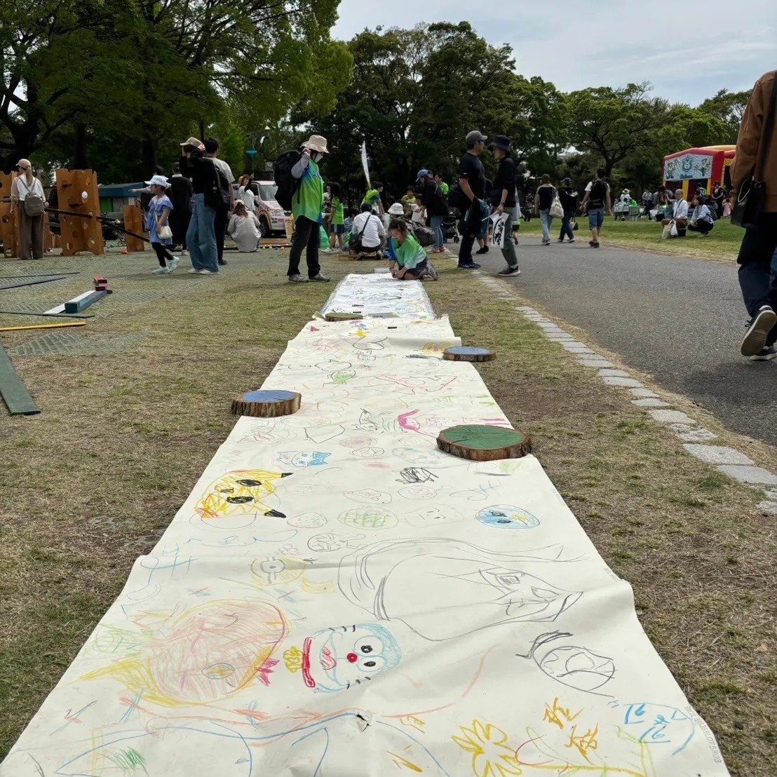 会場となった平塚市総合公園はサッカースタジアム・野球場などもある大規模な公園で、その一角で遊び場を行いました。