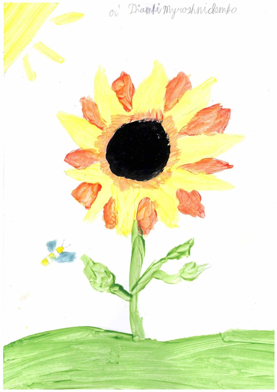 この企画のために、ウクライナから避難している子どもたち、大人たちが、ひまわりの絵を描いてくれました。