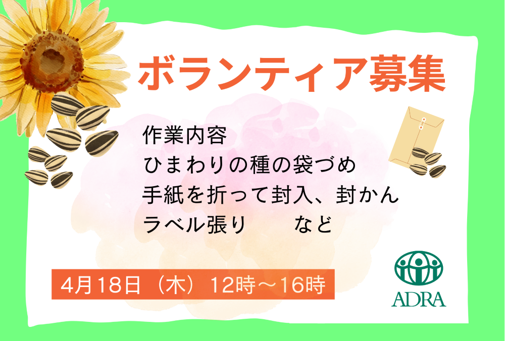 また、4月18日 ひまわりの種の発送ボランティアを募集中です。