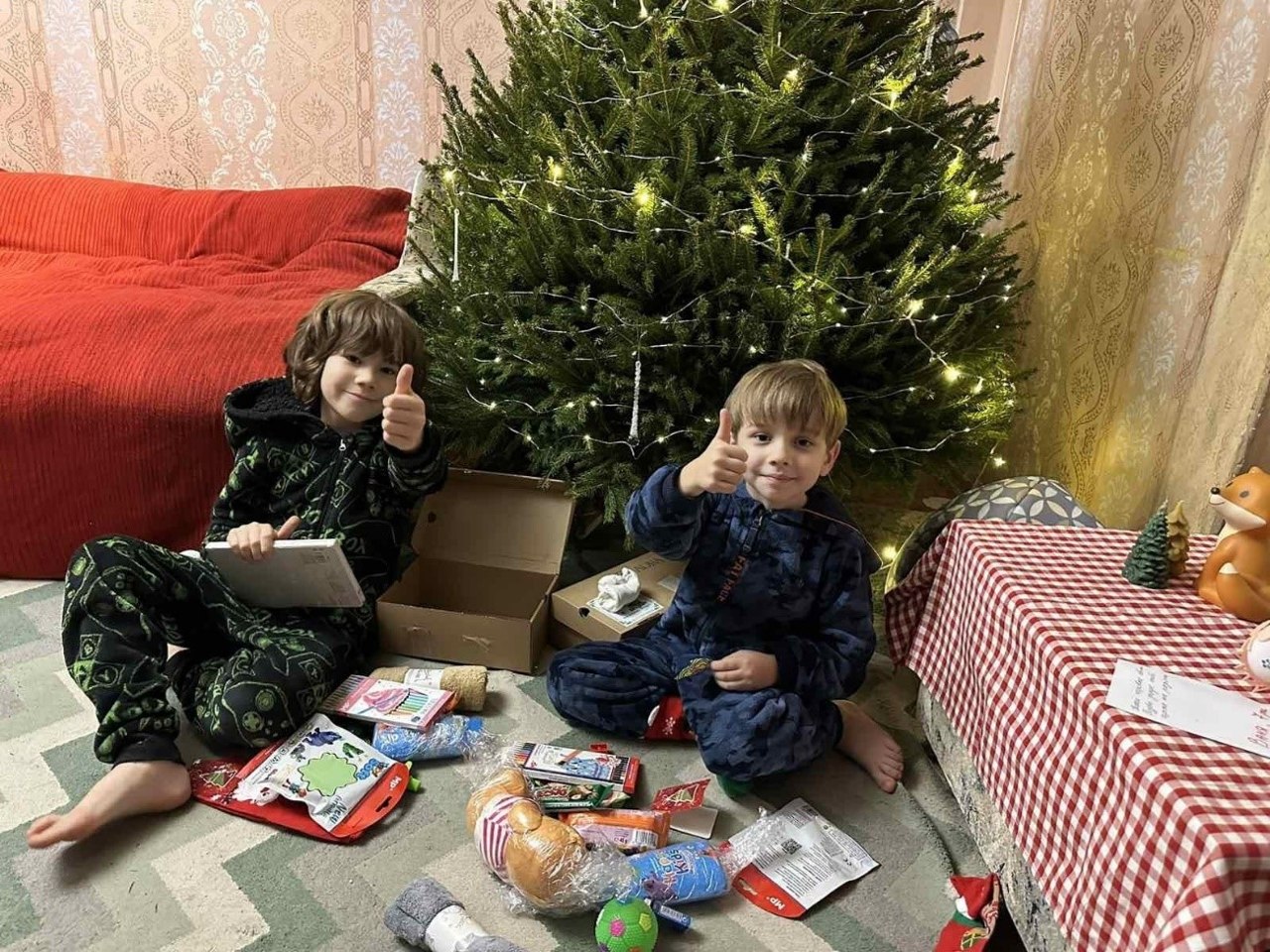 「我が家の4人の子どもたちからのささやかな気持ちです。ウクライナの子どもたちに、メリークリスマス!」