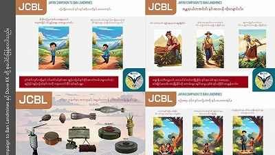 JCBLは現地NGOのDKKと相談し、地雷の危険回避教育の多言語化を行っています。多民族国家であるミャンマーにおいては、ビルマ語よりもそれぞれの民族言語の方が効果的です。