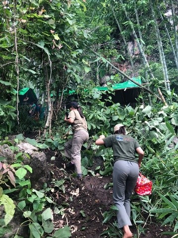 画像左:険しい山道を登る女性医師たち