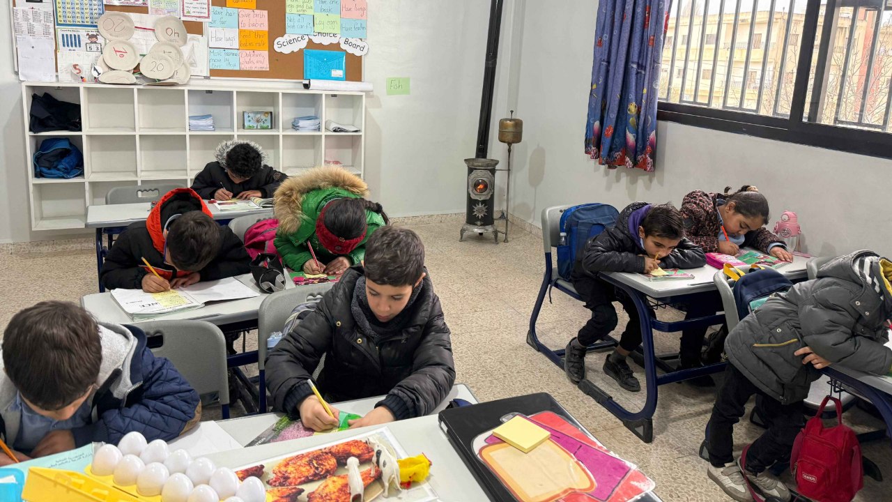 帰還が難しい人びとが多く残るベカー高原の町、ザハレ郡バール・エリアス市では、シリア難民やパレスチナ難民、経済的に困窮するレバノン人の子どもたちが共に学んでいます。山岳地帯にあり標高1,000メートル近いこの地の冬は厳しく、氷点下まで冷え込みます。家庭で暖房用の灯油を確保することが難しいなか、暖かい教室で過ごす時間が子どもたちにとって何よりの楽しみで、学ぶことは子どもたちの将来の可能性を広げることにもつながります。