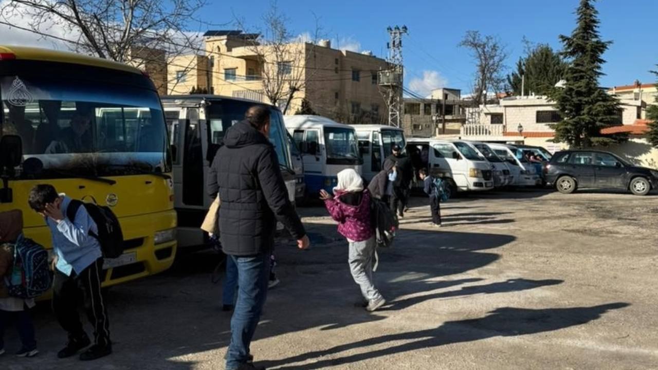アマン校の子どもたちは、バール・エリアスや隣接する村々にある難民キャンプから通っており、学校の駐車場には何台ものスクールバスが止まっています。子どもたちは校舎を出ると、自分の家があるキャンプへ行くバスに向かいます。談笑しながら歩く子どももいれば、真っ先にバスまで走っていく子どもも。駐車場では、各クラスの担任の先生が待っていて子どもたちがバスに乗るのを確認します。バスに乗る前にハイファイブをする子どもや、先生に駆け寄り挨拶がわりにぎゅっとハグをしてバスに乗り込む子どももいます。このような一日の終わりの光景はどこも変わらず、懐かしさと同時に尊さを感じます。