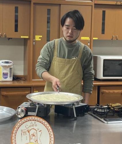 1月6日のイベントでは、パルシックのお話とともに、クナーファ屋(Instagram→@shuknafeh)のできたてクナーファを美味しくいただきました。クナーファ屋の山田柊さんは、クナーファの本場パレスチナでの修行経験もあり、パルシックのパレスチナイベントでもご一緒させていただいたことがあります。