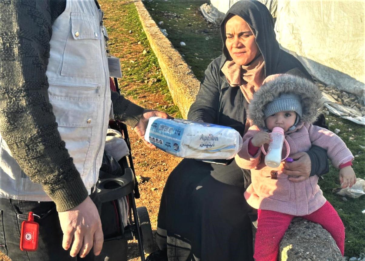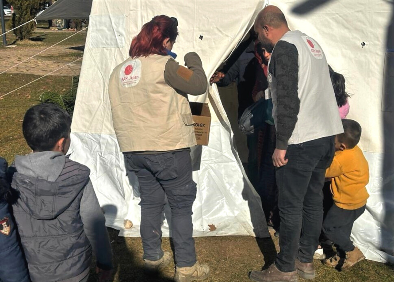 AARは地元自治体や他の支援団体と協議しながら、シャンルウルファ県内で14~16日、衛生用品(液体石けん、歯磨き、ウェットティッシュ)と生理用品、おむつ、調理済み食品セット(オリーブ、チーズ、ジャム、チョコレートクリーム)を配付しました。支援現場で会った現地当局者は「仮設のコンテナとテント、薪ストーブが足りない」、被災者からは「子ども用ミルクや医薬品が手に入らない」という声が聞かれました。