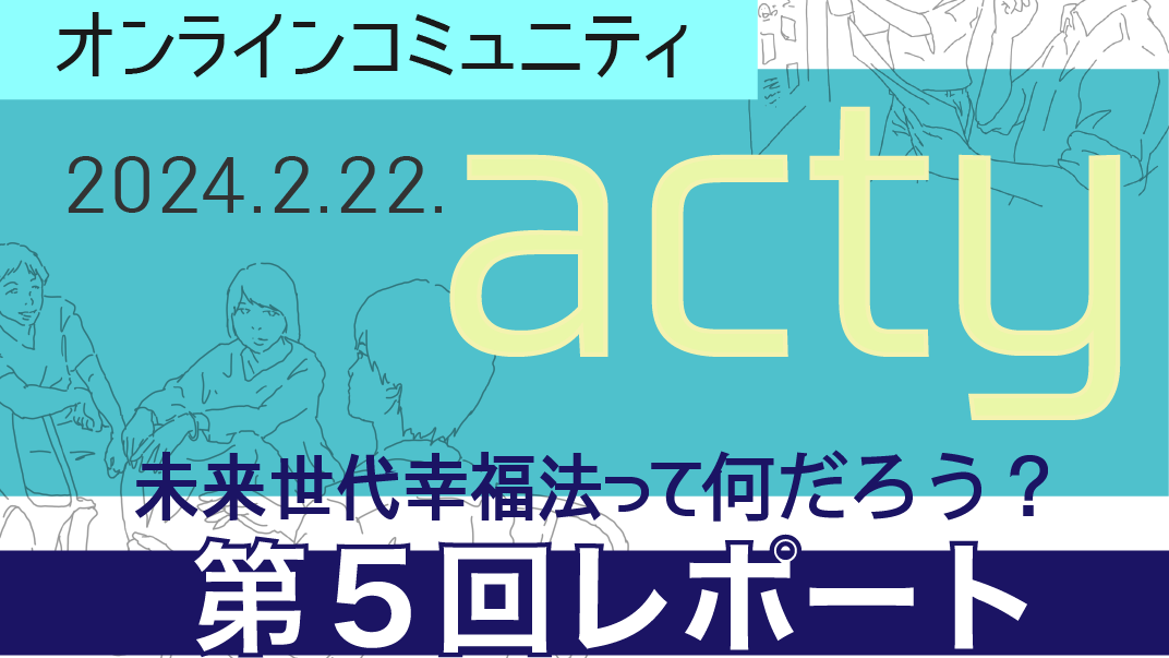 acty(アクティ)は、公正で持続可能な社会づくりをめざすために“一緒に考え、動くオンラインコミュニティ”です。毎月〜隔月のオンラインワークショップをベースに、会員同士の意見交換や情報共有を行ない、イベントの開催や具体的なアクションに繋げます。じっくりと対話を重ねる空間にぜひご参加ください。運営は環境系の助成基金であるアクト・ビヨンド・トラスト(abt)が行ないます。