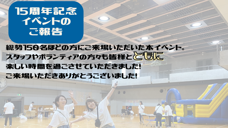 8月4日に開催させていただきました15周年記念イベントが無事終了しましたことを、HPのお知らせで報告させていただきました。お時間よろしい時に覗いていただけると幸いです。