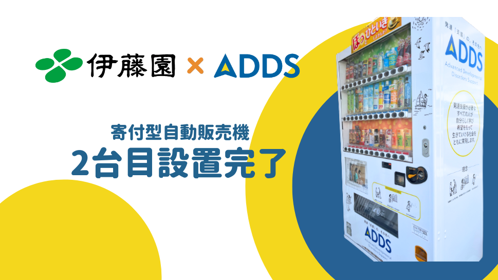 この自販機では、1本購入につき5円がADDSに寄付される仕組みになっています。日常の中で気軽に支援に参加できる、そんな温かい仕組みです。