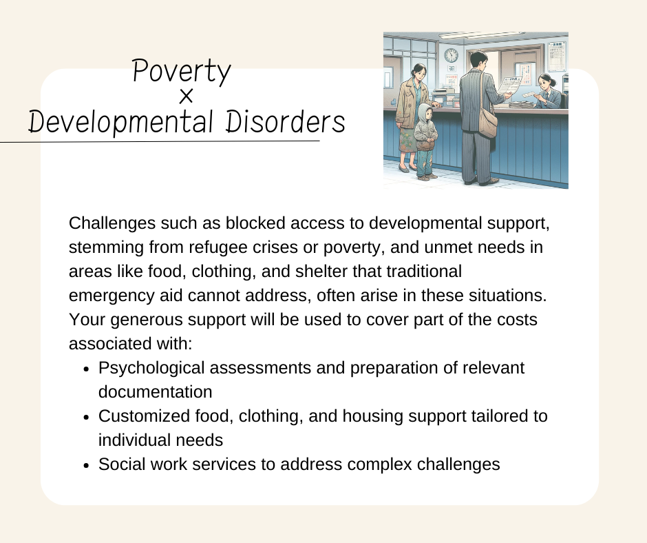 While we are not experts in refugee or poverty support, we are committed to working closely with specialized organizations to ensure A-kun has a safe environment that meets his needs. We will continue advocating for education and support tailored to his developmental characteristics.