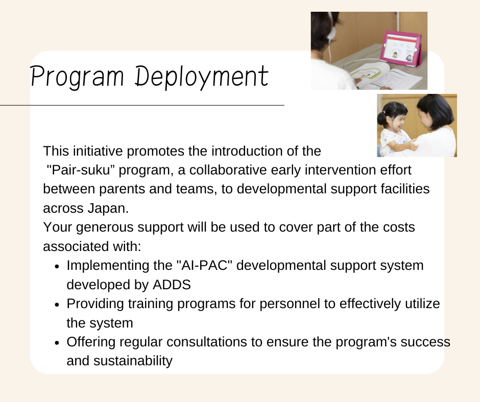 Support was extended at Edogawa Ward Developmental Consultation and Support Center, ADDS kids 1st facilities, and other high-quality service locations nationwide with-in the ADS-NET network.