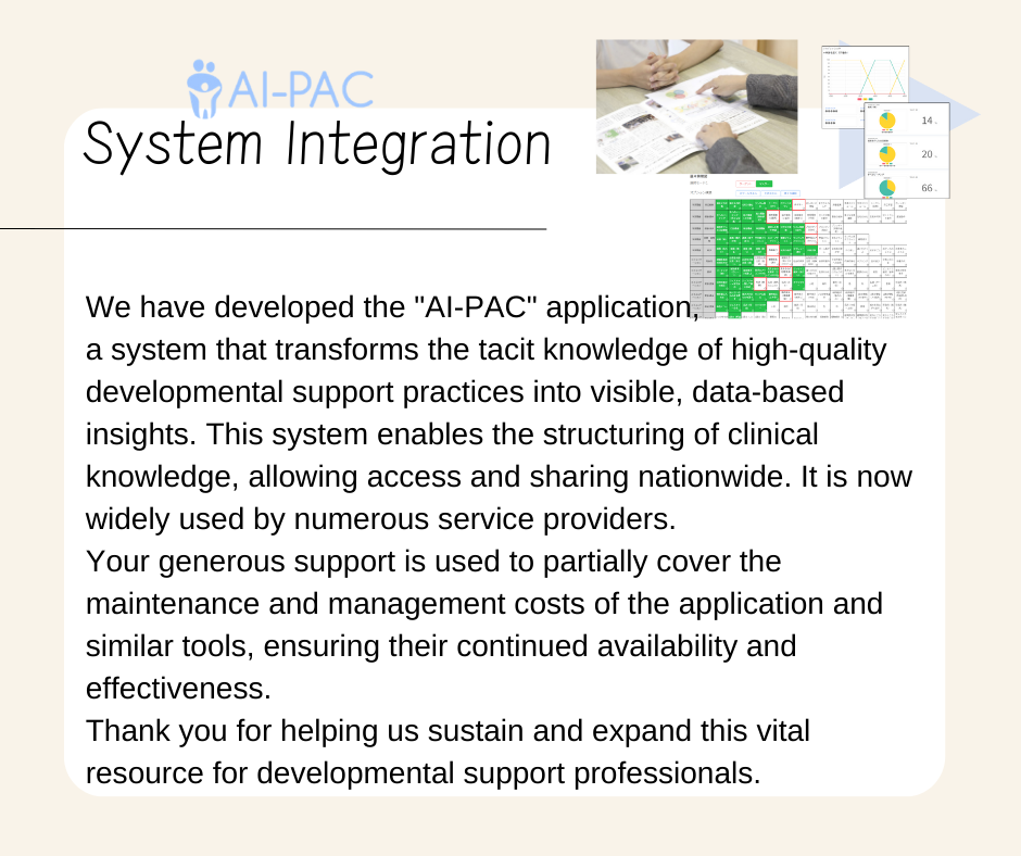 - Creating Accessible Tools: We developed the AI-PAC system to standardize and improve the quality of developmental support, making evidence-based resources available nationwide.