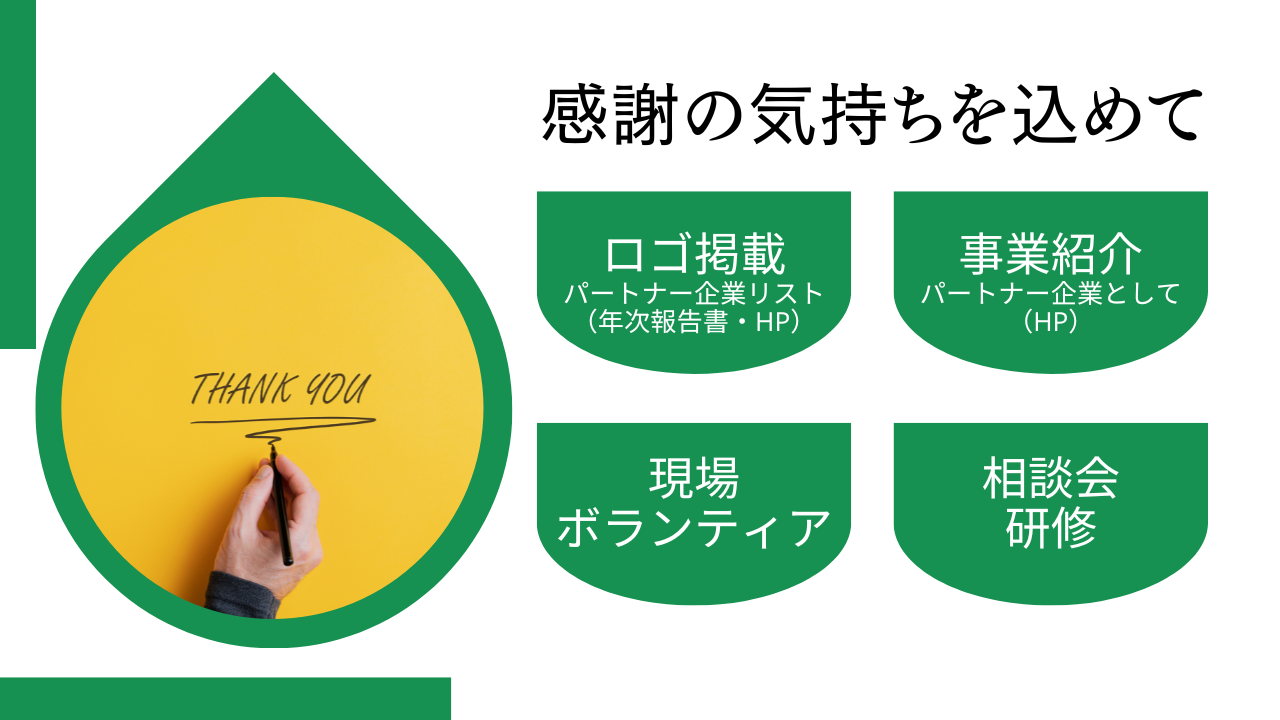 - 寄付事業:法人パートナー募集について