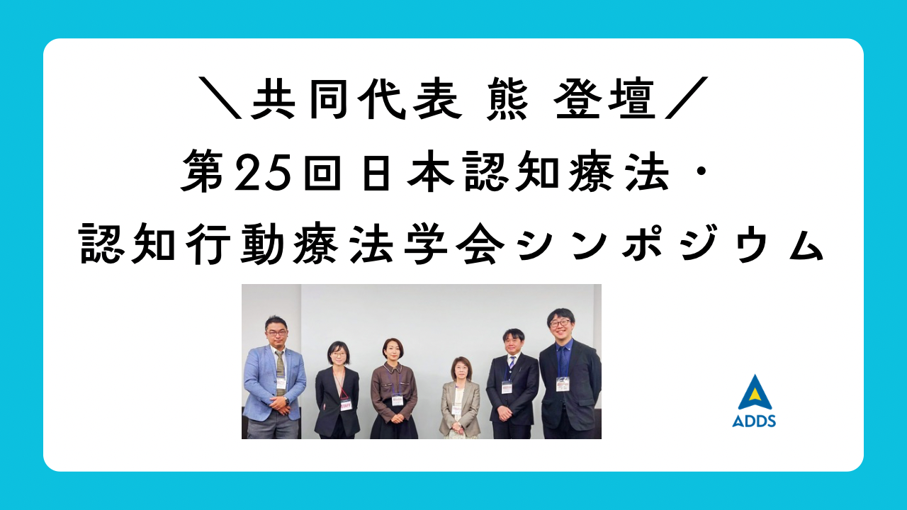 ADDS共同代表の熊仁美が、2025年11月14日(金)~16日(日)にサンシャインシティ会議室(東京都豊島区)にて開かれた第25回日本認知療法・認知行動療法学会におけるシンポジウムに参加させていただきました。=======テーマ『特別支援における家庭や学校、地域の連携について』=======
