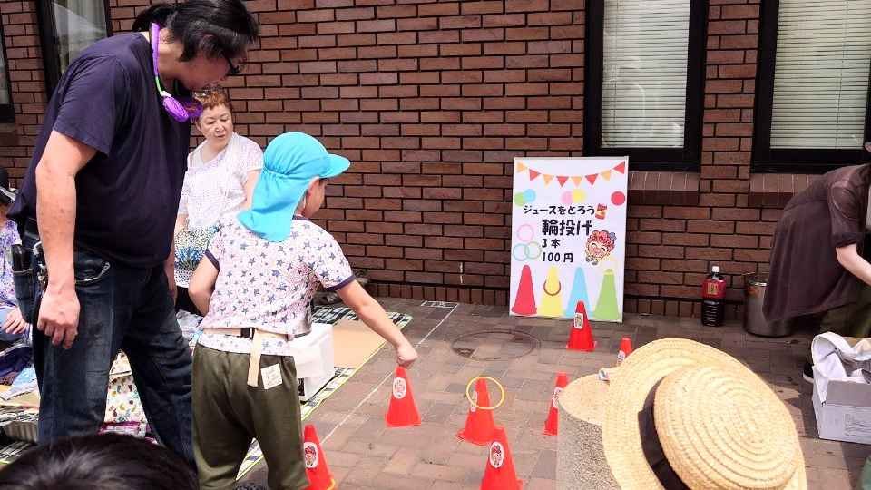 輪投げをしてジュースを取るゲームでは、順番待ちのお客様で列ができるなど、大変好評いただきました。