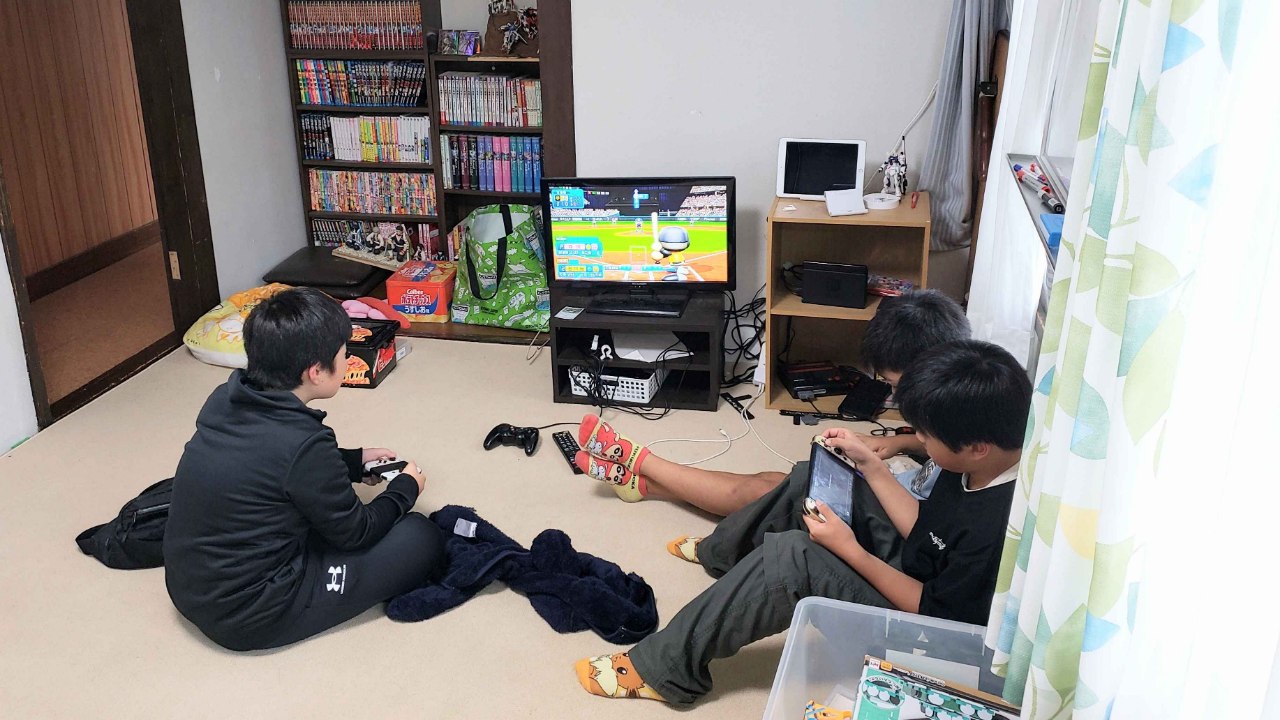 2階に行くと電気もつけずにゲームを始めていました。