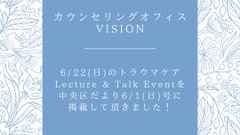 - 2025-05-31 10:216/22(日)のトラウマケアLecture & Talk Eventに皆さまぜひご参加ください!6/22(日)のトラウマケアLecture & Talk Eventに皆さまぜひご参加ください!2025-05-31 10:216/22(日)のトラウマケアLecture & Talk Eventに皆さまぜひご参加ください!6/22(日)のトラウマケアLecture & Talk Eventに皆さまぜひご参加ください!