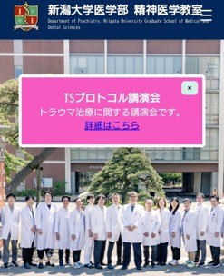 NPO法人新潟トラウマ治療協会主催の『TSプロトコール & IFS講演会』のお知らせを、新潟大学医学部精神医学教室のHPに掲載して頂きました!ありがとうございます