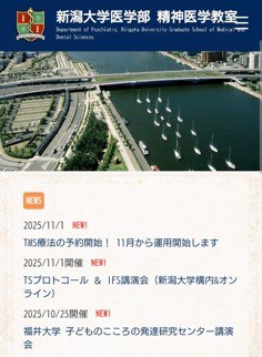 『TSプロトコール & IFS講演会』のお知らせを、新潟大学医学部精神医学教室のHPに掲載
