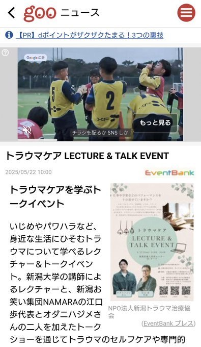6/22(日)のトラウマケアLecture & Talk Eventの情報を、新潟情報さま(5/28(水)号)、dmenuニュースさま、gooニュースさまに掲載して頂きました!