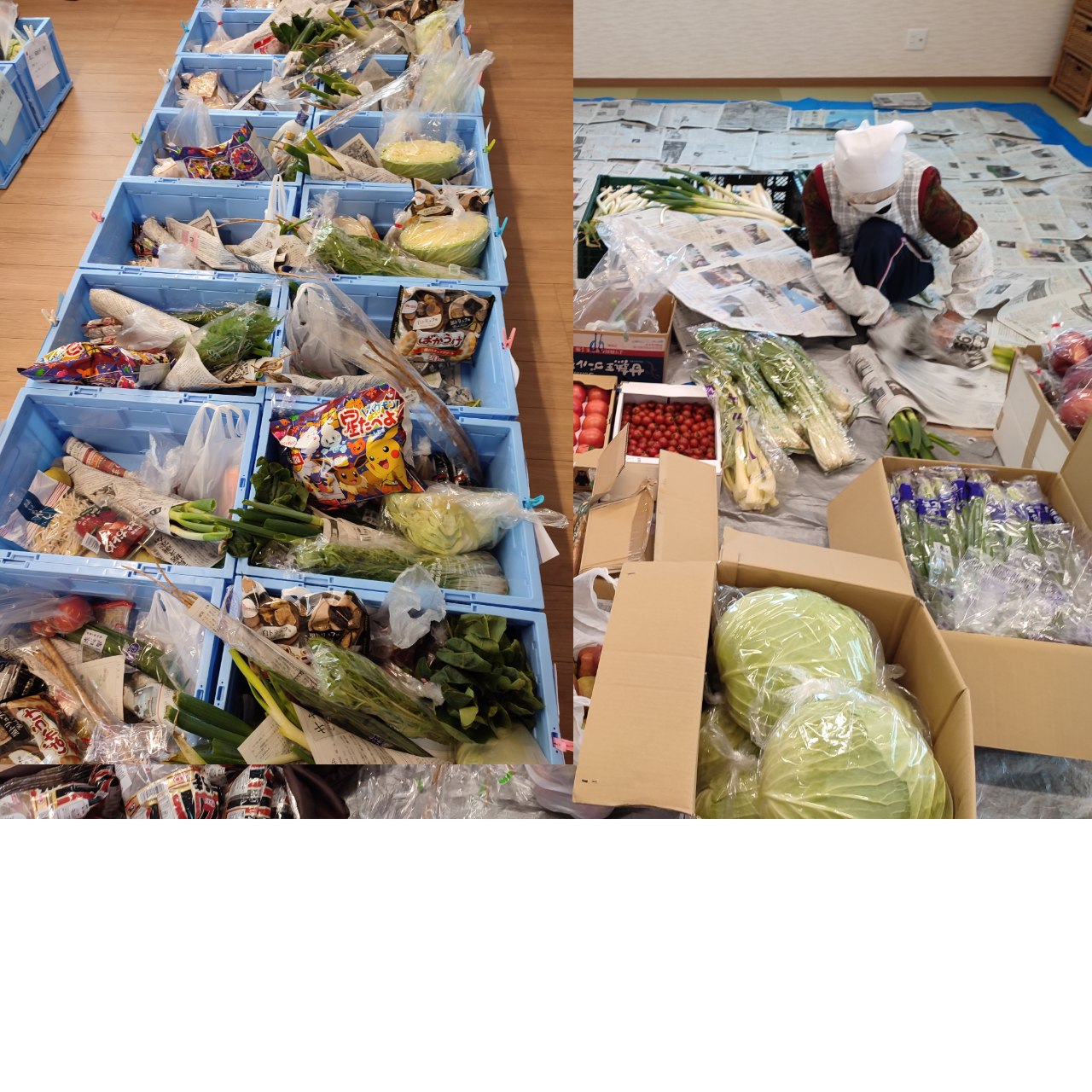 《令和5年度の実績》 お米 1,375㎏、野菜1,105㎏、肉野菜40㎏、その他食品・日用品多数