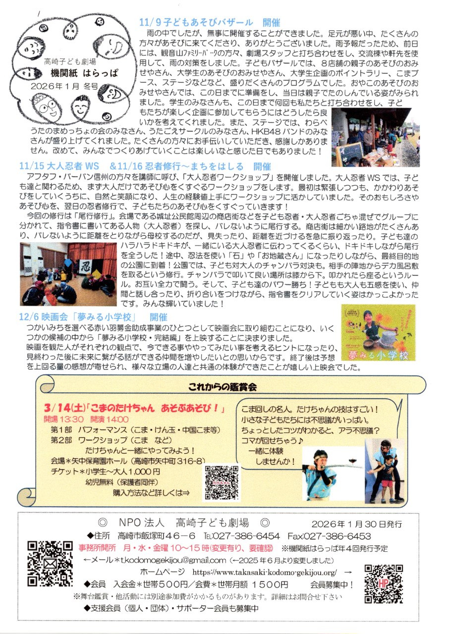 昨年秋~冬にかけてのイベントのまとめや、感想などを掲載しています。 楽しい活動の様子を、ぜひ、ご一読下さい。