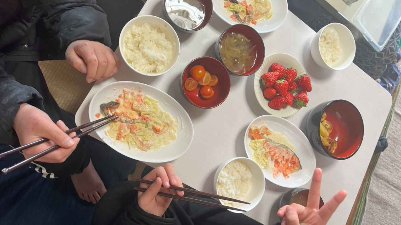 2026-02-09 16:55今日の○○今日のお昼はハンバーグにしました。親子連れ2組と小学生4人中学生1人が来て、おかわりもしてたくさん食べてくれました。 寒波が来て雪もちらついていましたが、外で台車に乗って走り回ったり穴を掘ったり寒くても元気に遊んでいてたくましかったです。 前日に外で氷を仕込んでいて、割ったり色をつけたり楽しんでいました。 寒くなったら室内でも、年齢関係なくはしゃいでいたのが印象的でした。 「ご飯を食べた後でもゆっくり過ごせて助かります」という声をいただいて改めて居場所というのが大切なことだと感じました。 (文・けいちゃん)2026-02-09 16:55今日の○○今日のお昼はハンバーグにしました。親子連れ2組と小学生4人中学生1人が来て、おかわりもしてたくさん食べてくれました。 寒波が来て雪もちらついていましたが、外で台車に乗って走り回ったり穴を掘ったり寒くても元気に遊んでいてたくましかったです。 前日に外で氷を仕込んでいて、割ったり色をつけたり楽しんでいました。 寒くなったら室内でも、年齢関係なくはしゃいでいたのが印象的でした。 「ご飯を食べた後でもゆっくり過ごせて助かります」という声をいただいて改めて居場所というのが大切なことだと感じました。 (文・けいちゃん)