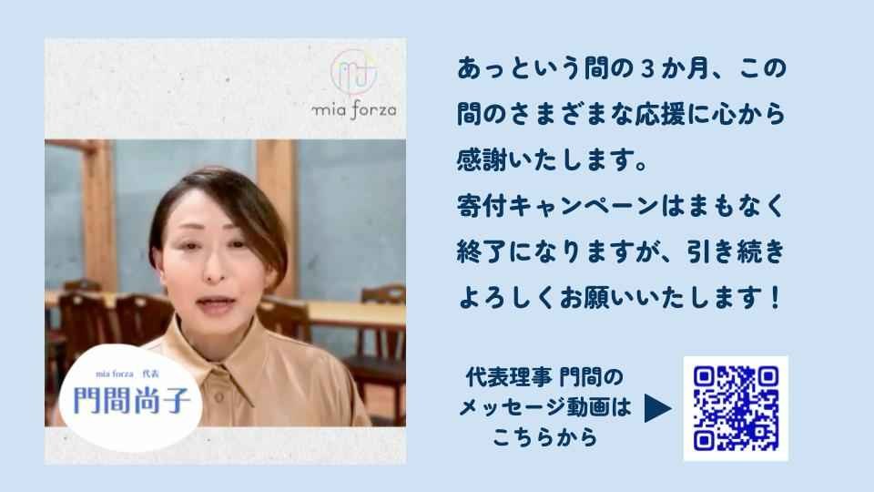 2026-02-24 08:35mia forza副代表理事横山英子よりご支援のお願いメッセージです本プロジェクトに温かなご支援をいただき、心より感謝申し上げます。 皆さまの応援の輪は着実に広がり、本日時点で67名の方から1,561,314円のご寄付をいただいております。2月28日の終了まで、あと4日となりました。 今回は、mia forzaの副代表理事である横山英子より、メッセージをお届けします。 https://www.instagram.com/p/DVGYKJnlsng/ 長年、地域活性化や復興支援等の現場で「次世代を担う人材育成」に情熱を注いできた横山。地域の未来をつくるのはこどもたちであり、そのこどもたちが健やかに育つ土台こそが「食」であると、誰よりも強く確信しています。 副代表として共に活動を牽引する横山の熱い想いを、ぜひ受け取ってください。最後まで、皆さまと共にこの挑戦を形にしていきたいと願っています。応援のシェアやご紹介を、どうぞよろしくお願いいたします!2026-02-24 08:35mia forza副代表理事横山英子よりご支援のお願いメッセージです本プロジェクトに温かなご支援をいただき、心より感謝申し上げます。 皆さまの応援の輪は着実に広がり、本日時点で67名の方から1,561,314円のご寄付をいただいております。2月28日の終了まで、あと4日となりました。 今回は、mia forzaの副代表理事である横山英子より、メッセージをお届けします。 https://www.instagram.com/p/DVGYKJnlsng/ 長年、地域活性化や復興支援等の現場で「次世代を担う人材育成」に情熱を注いできた横山。地域の未来をつくるのはこどもたちであり、そのこどもたちが健やかに育つ土台こそが「食」であると、誰よりも強く確信しています。 副代表として共に活動を牽引する横山の熱い想いを、ぜひ受け取ってください。最後まで、皆さまと共にこの挑戦を形にしていきたいと願っています。応援のシェアやご紹介を、どうぞよろしくお願いいたします!