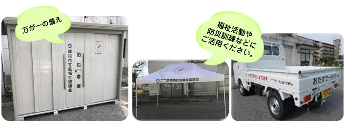 非常時に備えて防災用備品を整備、自治会への貸出しにより「災害にも強い地域づくり」を推進します。