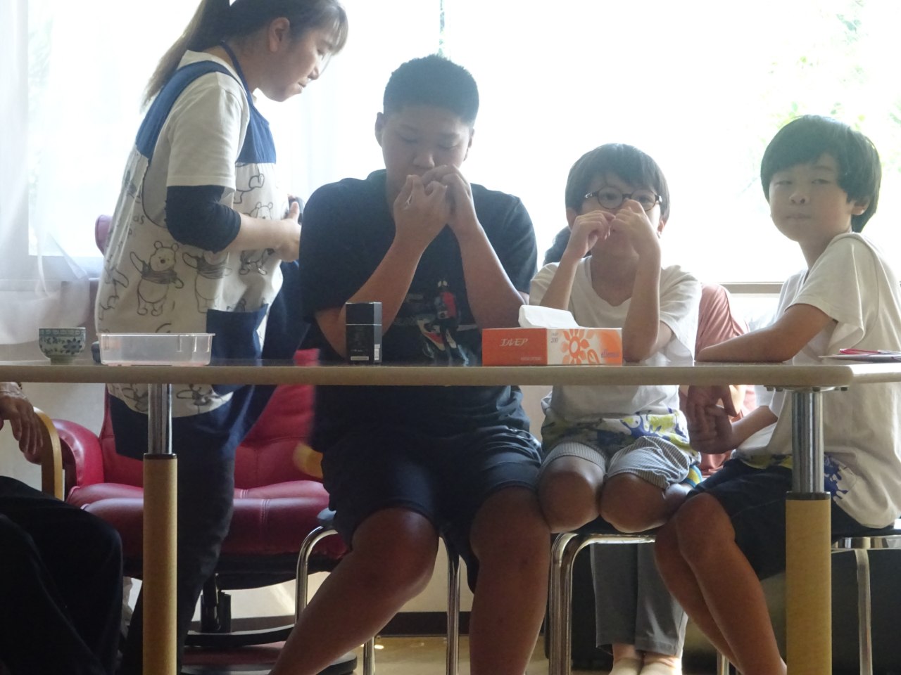 そこで、こどもたちの居場所に、紙芝居の舞台と設置台、拍子木、紙芝居をセットで設置し、そこに紙芝居ボランティア「越前らくひょうしぎの会」が楽しく口演し、あっちこっちで子どもたちが紙芝居に触れ、共感の感性を育む環境を整えます。