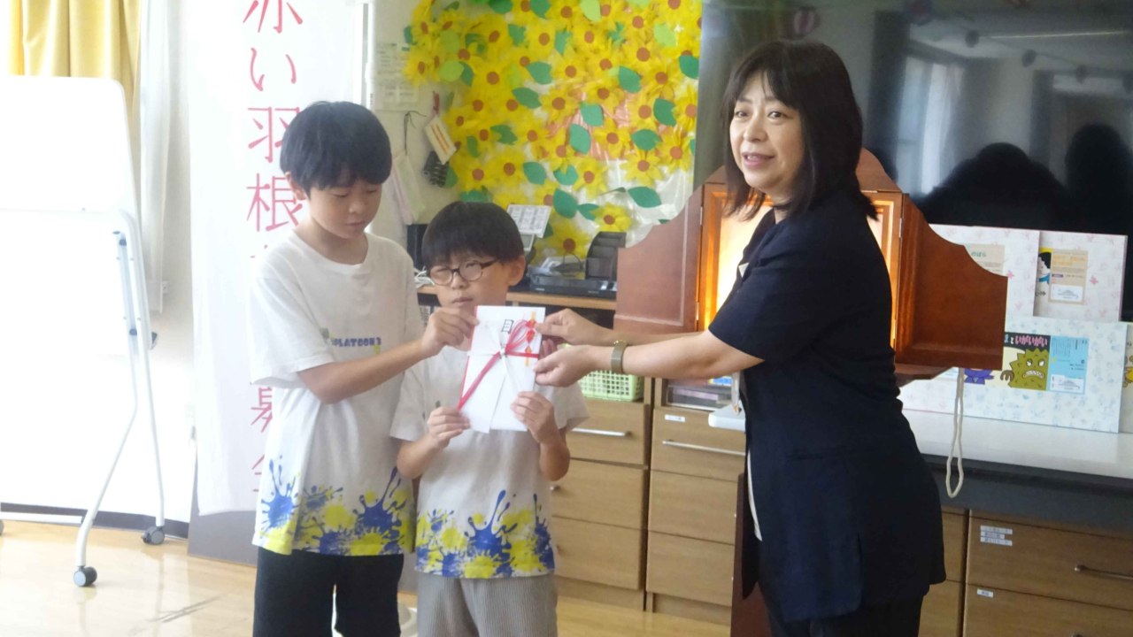 贈呈式ではこども達が目録を受け取ってくれ、お礼の言葉もいただきました。