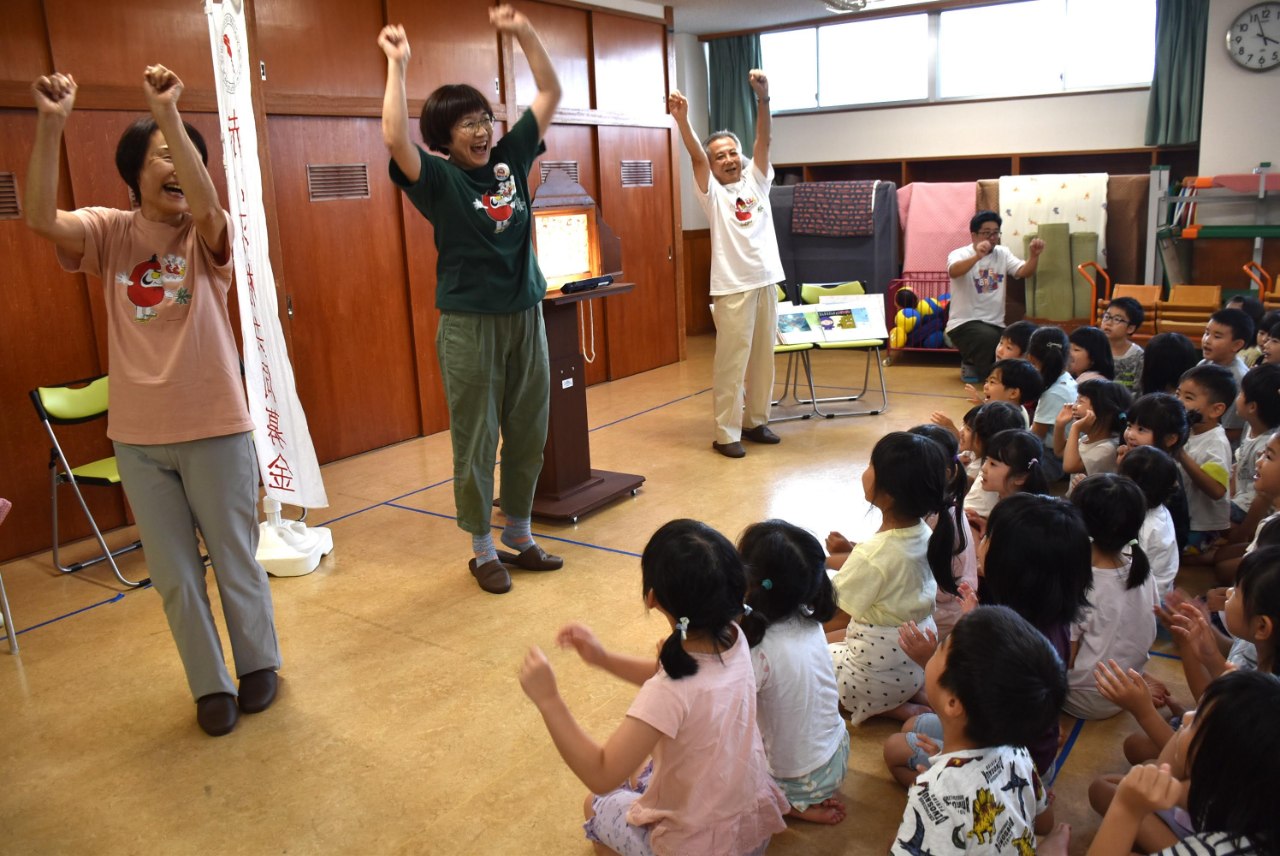一方通行のメディアがあふれる社会の中にいる子ども達に双方向のコミュニケーションができ、想像力や共感力を育むことができる紙芝居という日本独自の文化財に触れてほしいとの願いからです。
