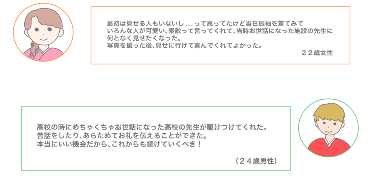 ハードルが高い理由として「お金がない」「親に頼れないし準備の仕方もわからない」「振袖を着て誰に見せればいいの?」という意見がありました。