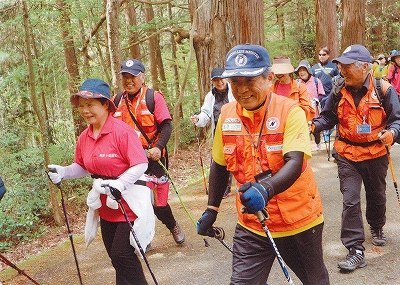 人間関係が希薄になりがちな今、仲間と歩くノルディックウォーク活動を通じては人との交流を深め、共生や共助の精神を育む「歩育(ほいく)」の活動をしています。