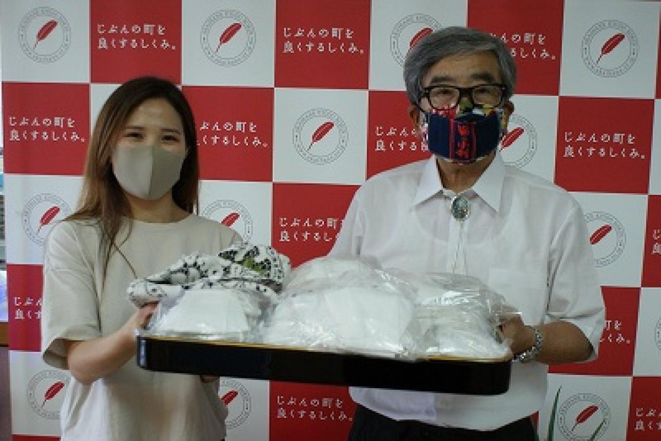 マスクは、阿部さんの手作り布マスクで、小さい子供たちの顔に合わせ作成したもの50枚をお持ちいただきました。