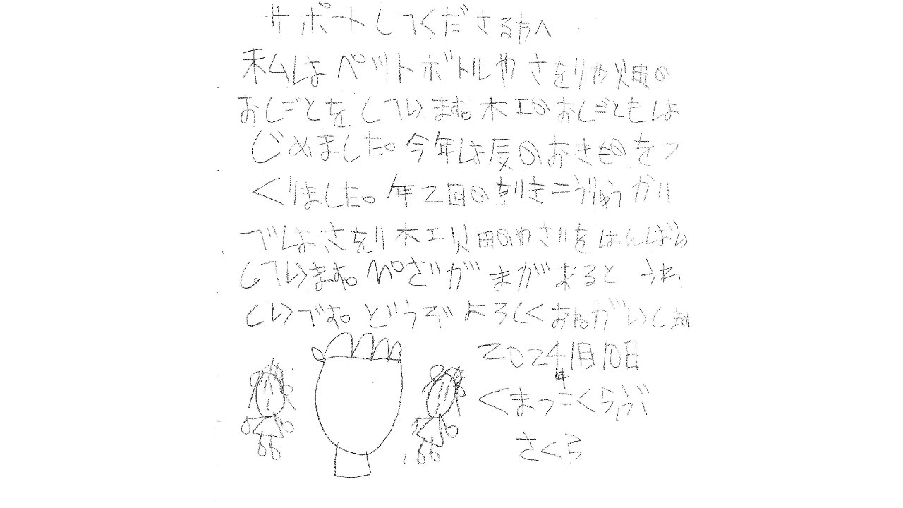 また、チラシを各施設に置かせていただいた際、くまっこのなかまが書いたお手紙をお渡しさせていただきました。ご協力いただいた各施設の皆様、本当にありがとうございます!