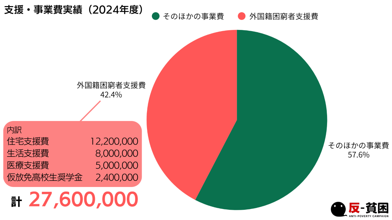 なお、2024年度の実績に鑑み、外国籍を持つ困窮者への支援活動を続けていくためには、3000万円程度のご寄付が必要だと見込んでおります。