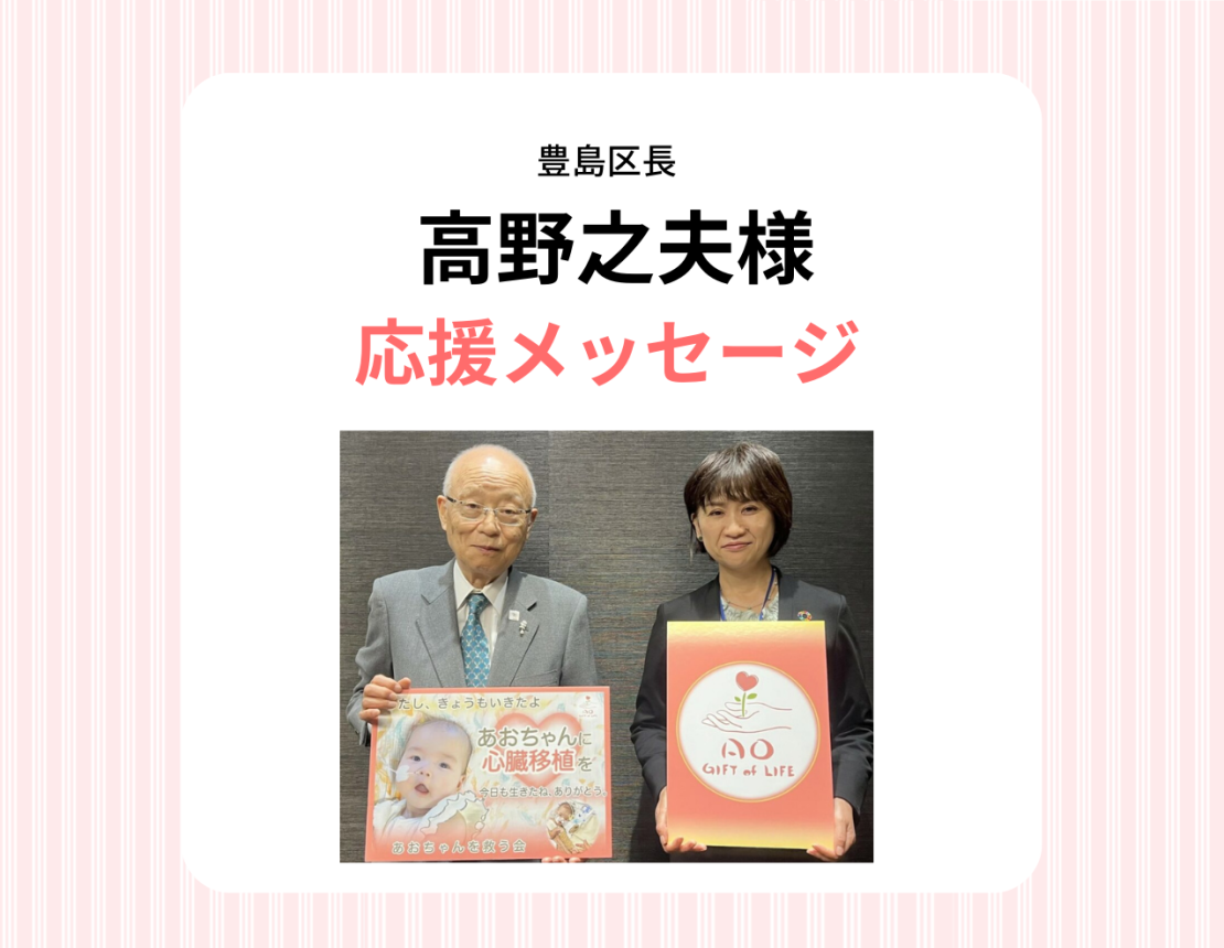 豊島区長 高野之夫様より応援メッセージをいただきました。