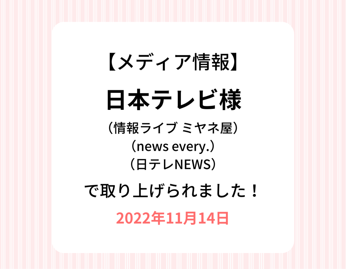 【TV放送/オンライン記事】11/14 日本テレビ様(情報ライブ ミヤネ屋、news every.、日テレNEWS)で取り上げていただきました