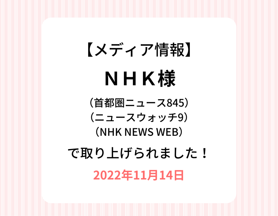 【TV放送/オンライン記事】11/14 NHK様(首都圏ニュース845、ニュースウォッチ9、NHK NEWS WEB)で取り上げていただきました