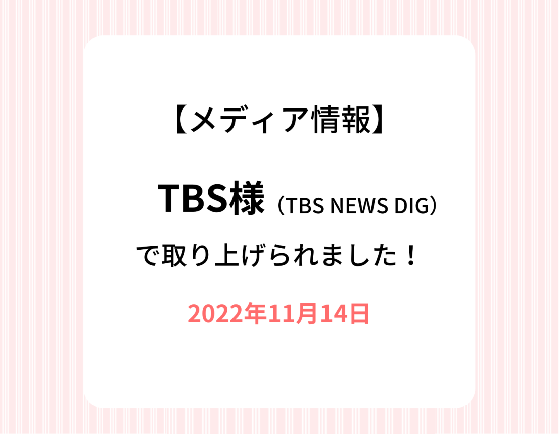 【オンライン記事】11/14 TBS様(TBS NEWS DIG)で取り上げていただきました。